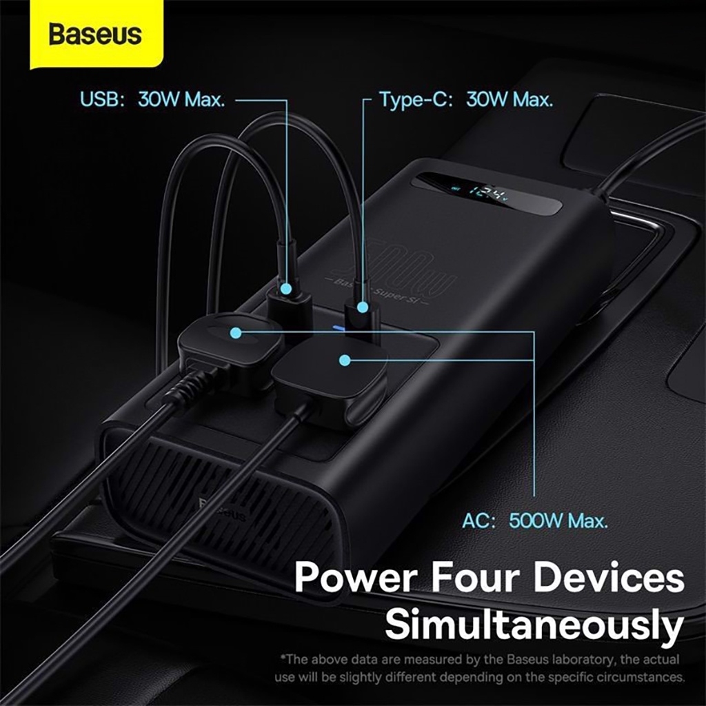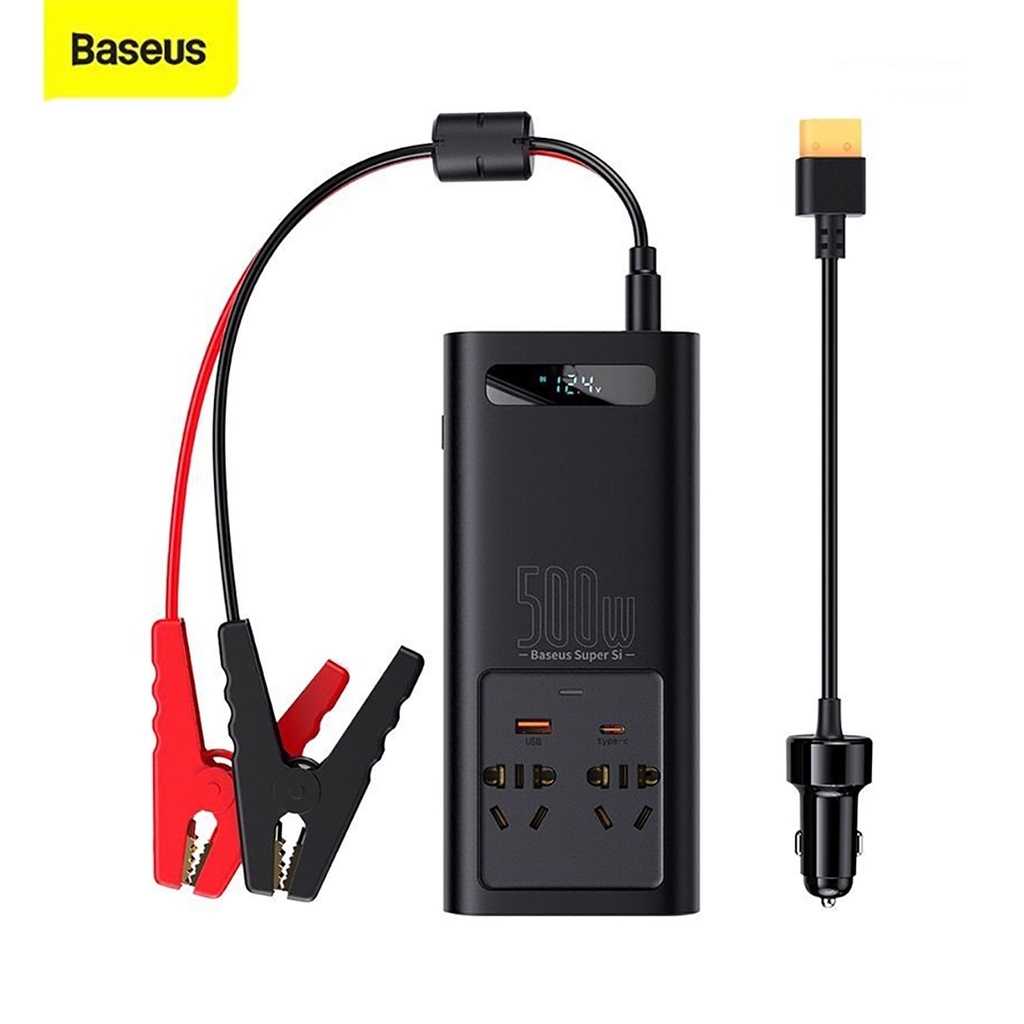 Bộ Chuyển Đổi Điện DC Ô Tô 12V Sang Điện Xoay Chiều AC 220V Baseus Super Si Power Inverter 500W Dòng Sin Chuẩn