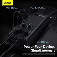 Bộ Chuyển Đổi Điện DC Ô Tô 12V Sang Điện Xoay Chiều AC 220V Baseus Super Si Power Inverter 500W Dòng Sine Chuẩn hỗ trợ sạc PD Type-C