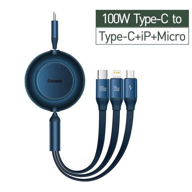 Cáp Sạc Du Lịch Rút Gọn 100W Baseus Bright Mirror Series 2 Retractable 3-in-1 Fast Charging Data Cable