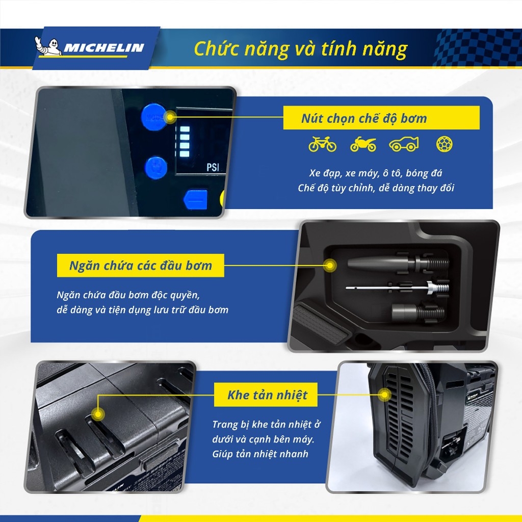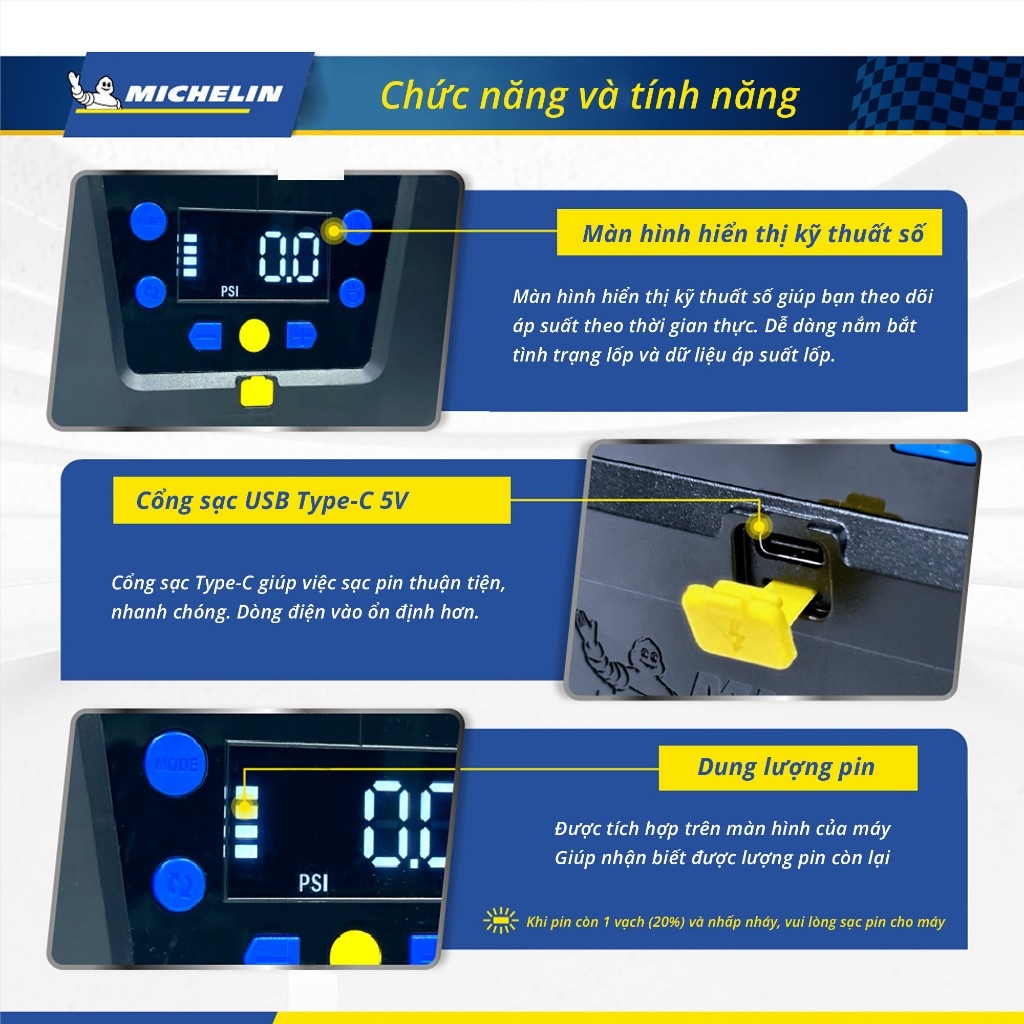 Máy Bơm Lốp Xe Ô Tô MICHELIN 17903 PIN SẠC 2 PISTON Đa Năng Cao Cấp Tự Động Ngắt (HÀNG CHÍNH HÃNG)