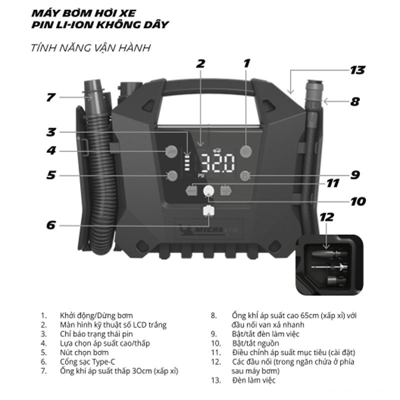 - Tên sản phẩm: Bơm lốp ô tô Michelin 17903